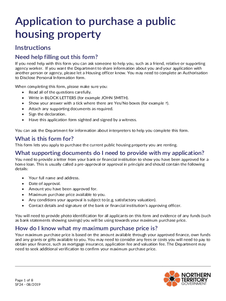 Application to purchase a public housing property Instructions Need help filling out this form? If you need help with this form you can ask someone to help you, such as a friend, relative or supporting