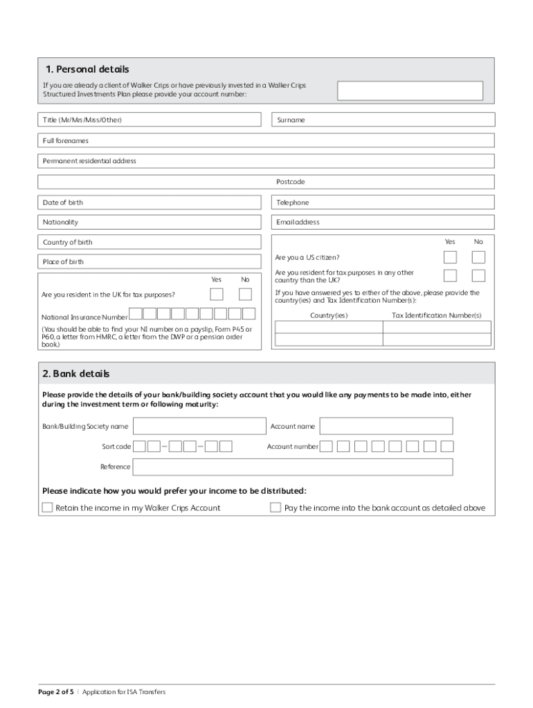 The application form for ISA typically requires personal details such as name, address, National Insurance number, and choice of ISA type.