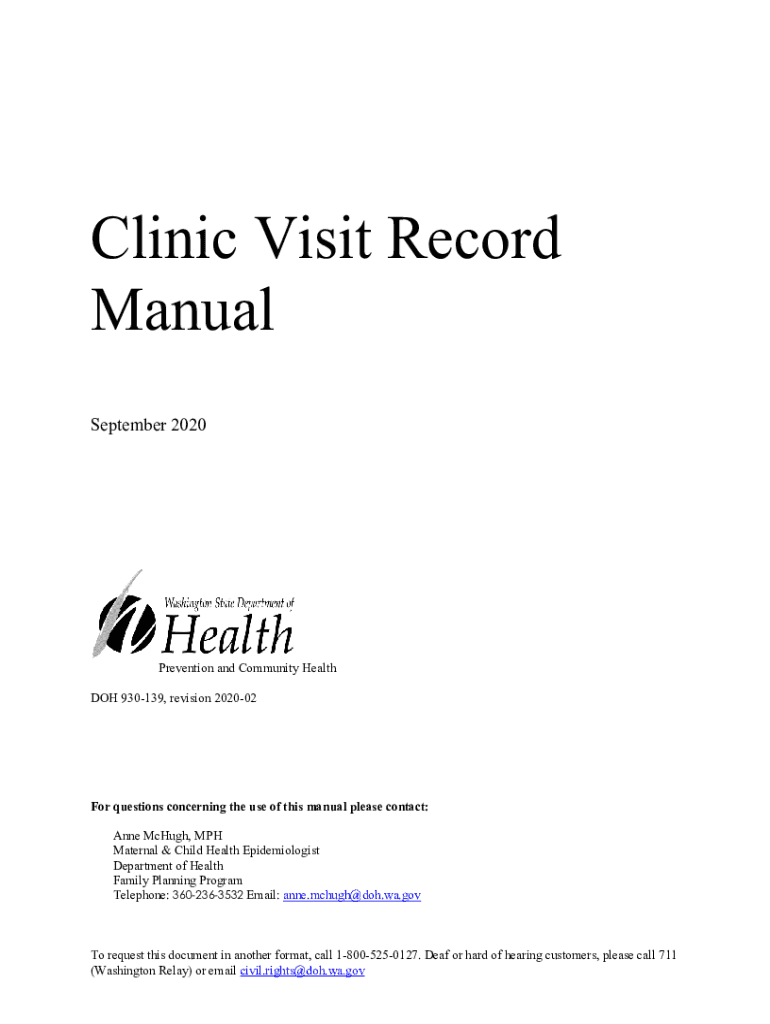 Clinic Visit Record Manual September 2020Prevention and Community Health DOH 930139, revision 202002For questions concerning the use of this manual please contact: Anne McHugh, MPH Maternal & Child