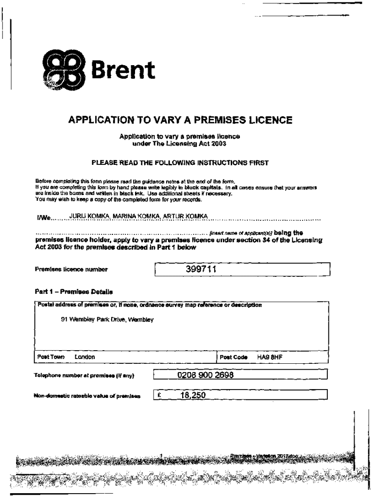 Get the free www.brent.gov.ukmedia16419574APPLICATION TO VARY A PREMISES LICENCE
