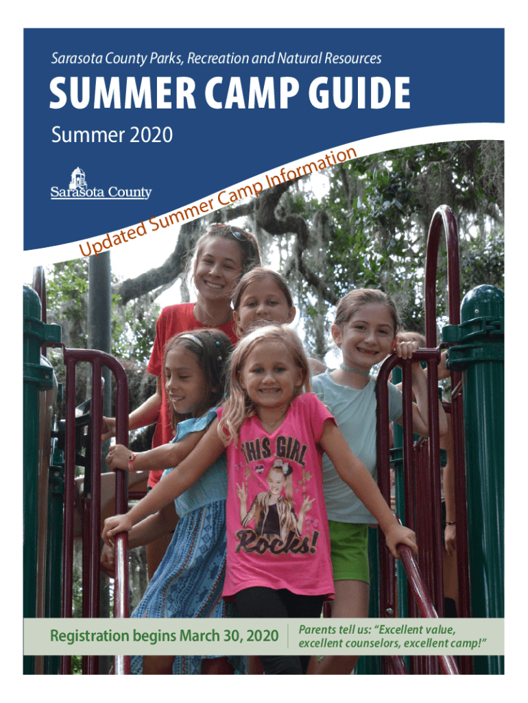 Sarasota County Parks, Recreation and Natural ResourcesSUMMER CAMP GUIDE Summer 2020 for n I mm u S EDTA USDA r e into an m registration begins March 30, 2020Parents tell us: Excellent value, excellent