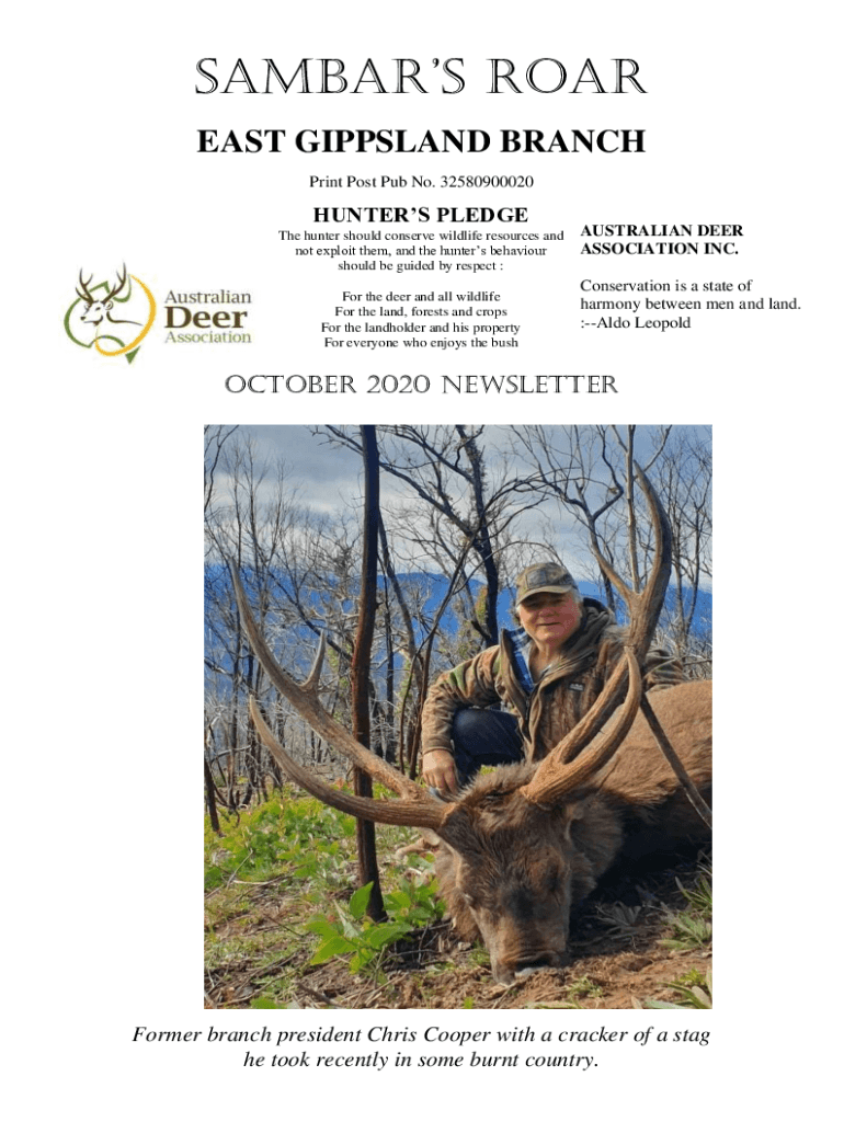 SAMBAS ROAR EAST ISLAND BRANCH Print Post Pub No. 32580900020HUNTERS PLEDGE The hunter should conserve wildlife resources and not exploit them, and the hunters' behavior should be guided by respect