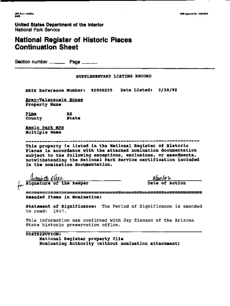 NP8 Form 1OWXX0MB Appeal No. 10244018United States Department of the Interior National Park ServiceNational Register of Historic Places Continuation Sheet Section number ___ Page ___ SUPPLEMENTARY