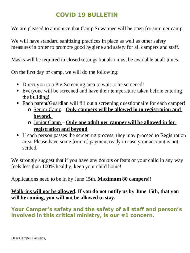 CAMP SUWANNEE REGISTRATION: frequently asked questions