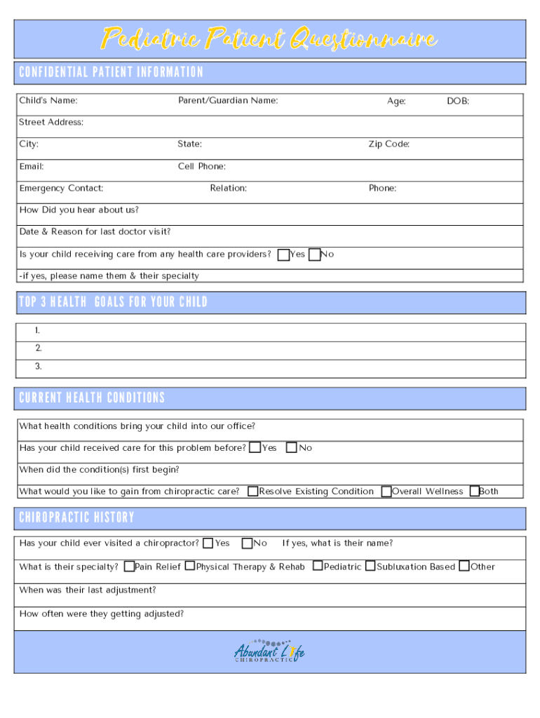 CONFIDENT TRIAL PATIENT T INFORMATION Child's Name:Parent/Guardian Name:Age:DOB:Street Address: City:State:Email:Cell Phone:Emergency Contact:Zip Code:Relation:Phone:How Did you hear about us? Date