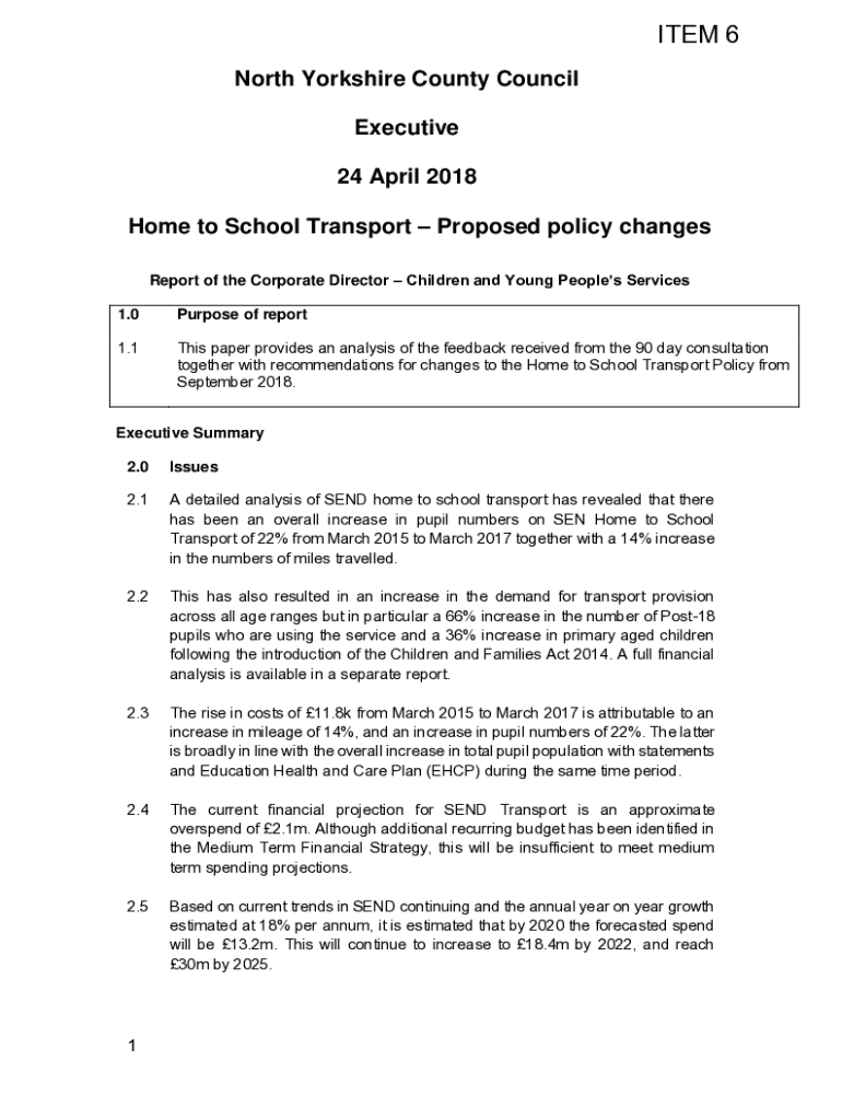 ITEM 6 North Yorkshire County Council Executive 24 April 2018 Home to School Transport Proposed policy changes Report of the Corporate Director Children and Young Peoples Services 1.0Purpose of report1.1This