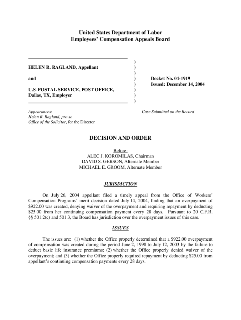 Get the free 04-1919: HELEN R. RAGLAND and U.S. POSTAL SERVICE...