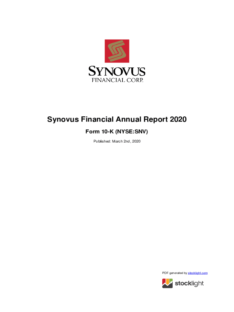 Synods Financial Annual Report 2020 Form 10K (NYSE:SNV) Published: March 2nd, 2020PDF generated by stock light. Counted STATES SECURITIES AND EXCHANGE COMMISSION Washington, D.C. 20549 ___FORM 10K