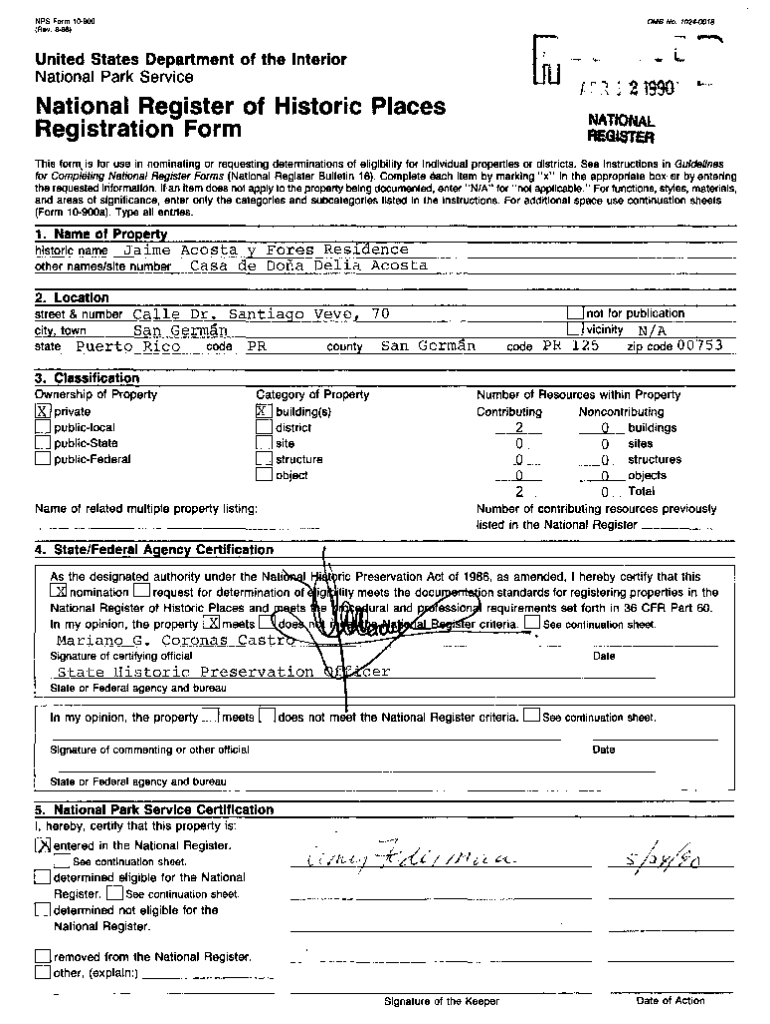 NFS Form 10900 (Rev. 886)OMB No. 10244018United States Department of the Interior National Park ServiceLILJNational Register of Historic Places Registration Form 121990\' NATIONAL Registers form is