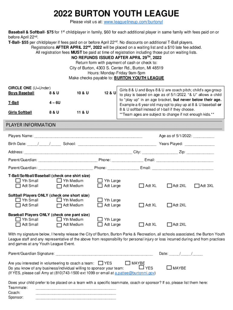 How to fill out burtonviewmihomepapercomarticlesburton-youthburton youth baseball league