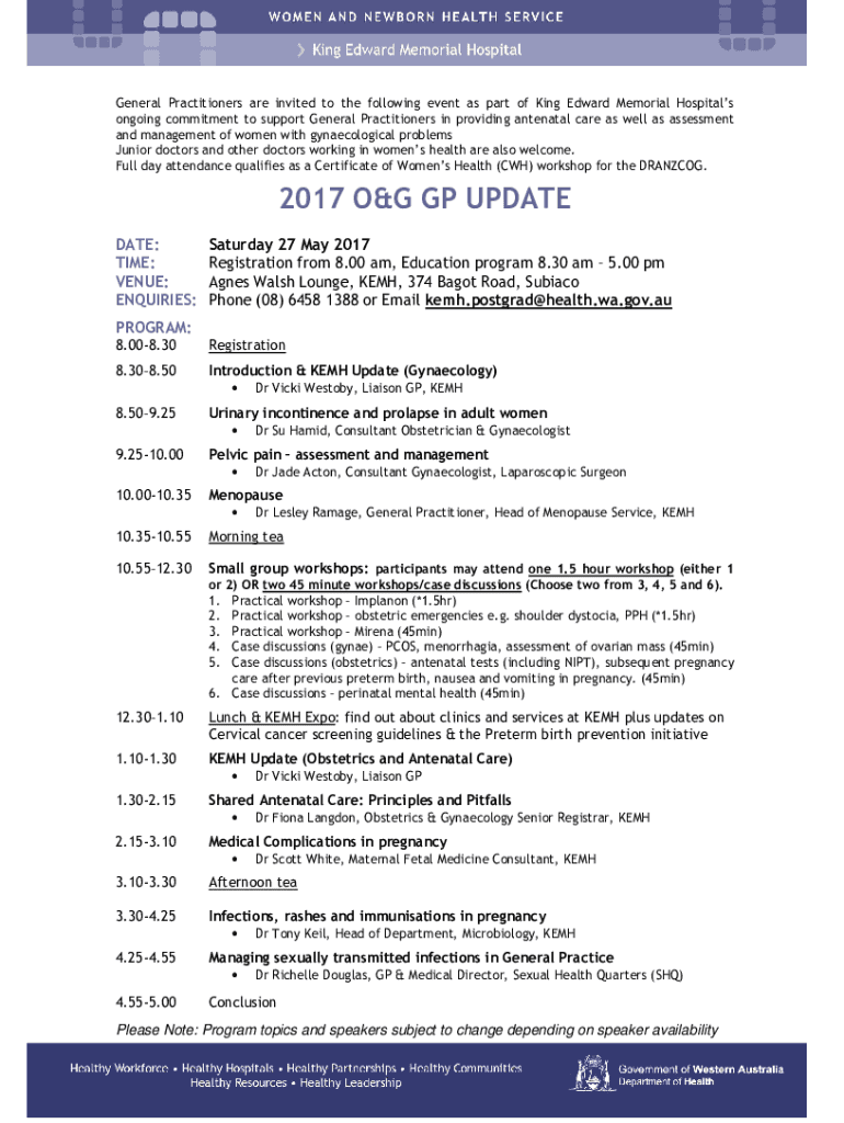 General Practitioners are invited to the following event as part of King Edward Memorial Hospitals ongoing commitment to support General Practitioners in providing antenatal care as well as assessment