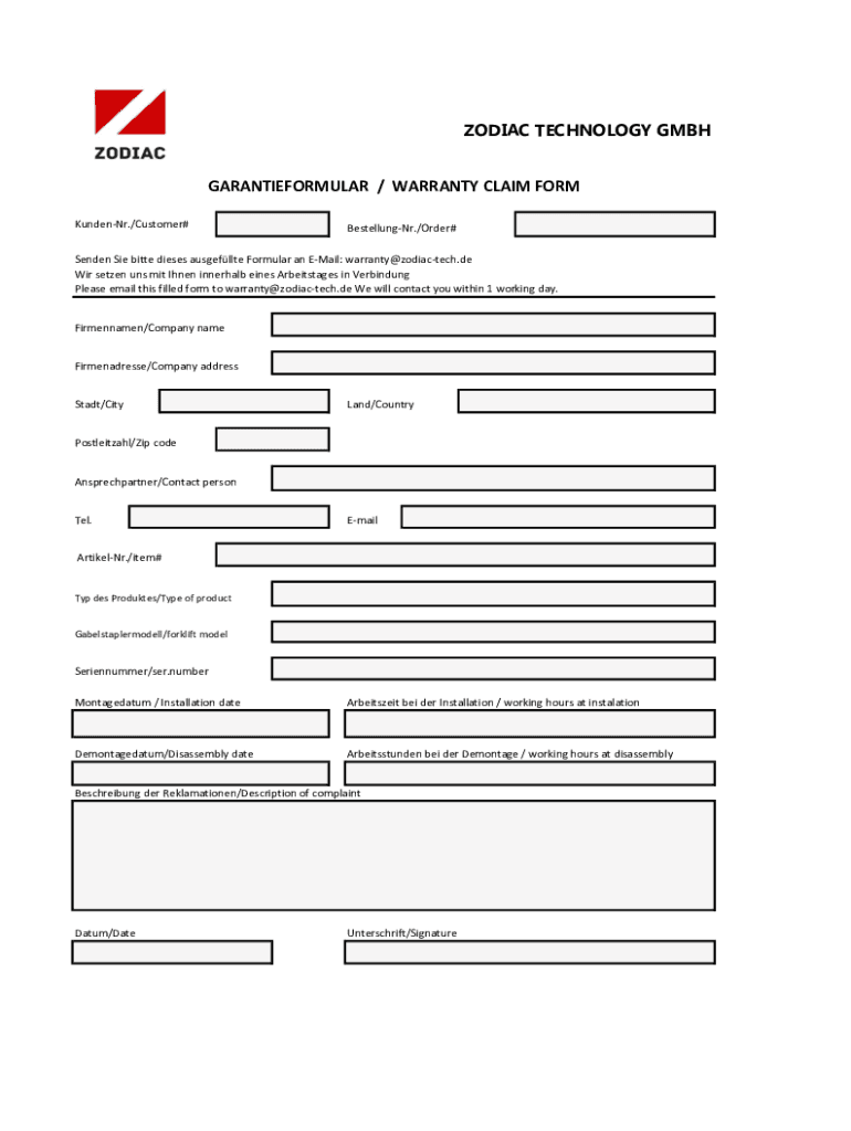 Get the Get the free garantieformular warranty claim form - Zekkert