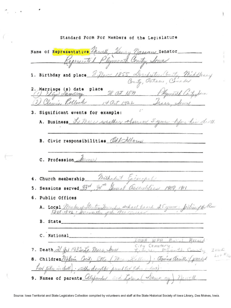 Standard Form For Members of the Le91slature Name of1. Birthday and place3. Significant events for example: A. Bus i né 11X//. A1 _JV./..... S 1t1, I P. /, _, (,11. (//B. Civic responsibility i BS
