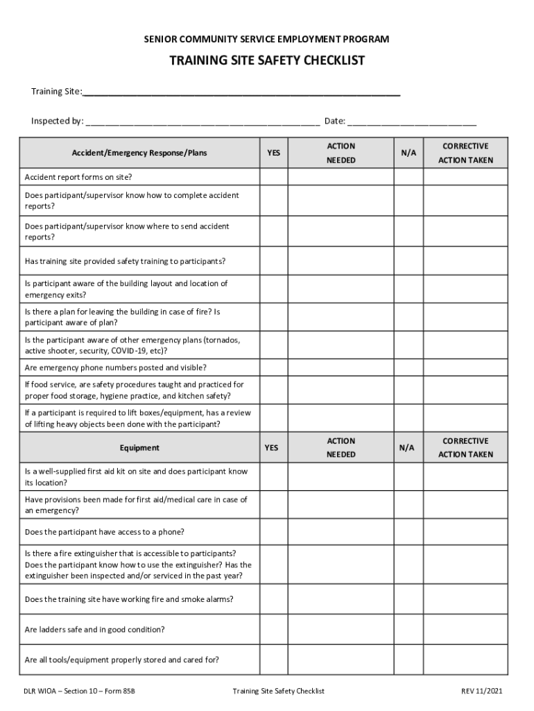 Get the free FORM 85B: SCSEP Site Safety Checklist - dlr sd