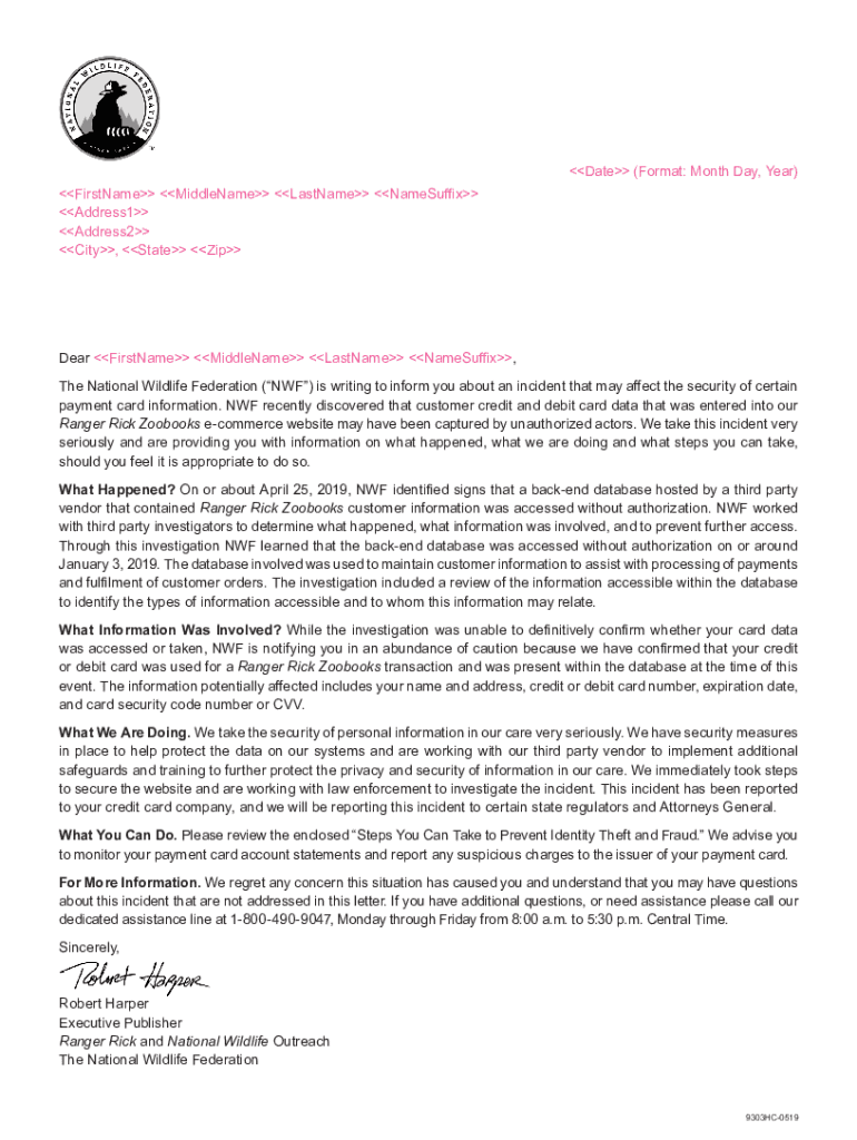 Get the free National Wildlife Federation - Notice of Data Event - MT.docx