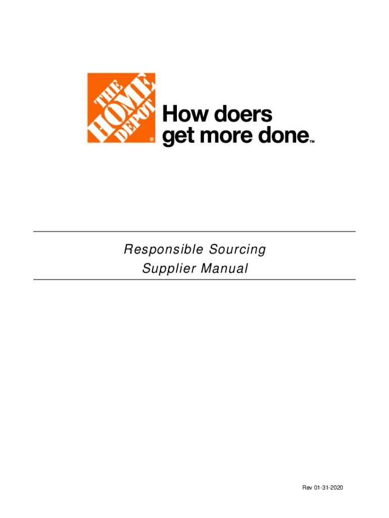 Responsible Sourcing Supplier Manual Rev 01312020TABLE OF CONTENTS INTRODUCTION. 1 PROGRAM OVERVIEW.... 1 ROLES AND RESPONSIBILITIES..... 2 RESPONSIBILITIES OF THE HOME DEPOT ... RESPONSIBILITIES