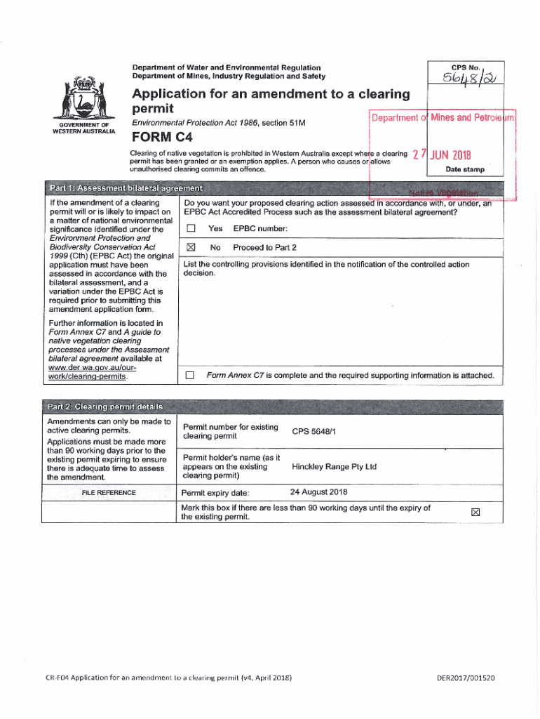 Department of Water and Environmental Regulation Department of Mines, Industry Regulation and SafetyApplication for an amendment to a clearing permit GOVERNMENT OF WESTERN Australian) Department o
