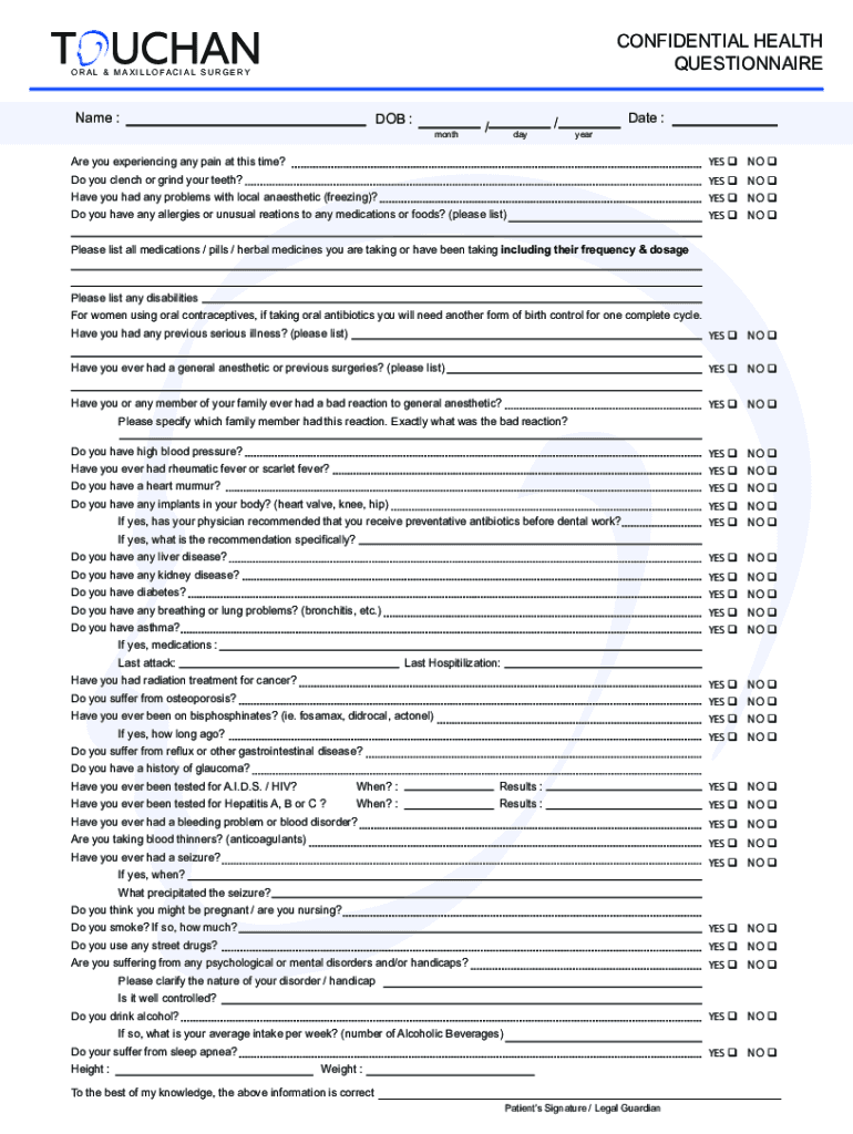 Get the free TOUCHAN - PATIENT FORMS - HEALTH QUESTIONNAIRE