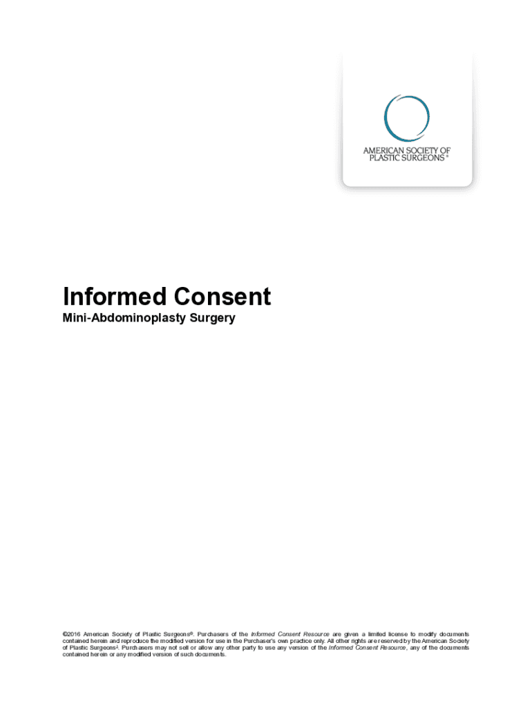 Informed Consent MiniAbdominoplasty Surgery2016 American Society of Plastic Surgeons. Purchasers of the Informed Consent Resource are given a limited license to modify documents contained herein and