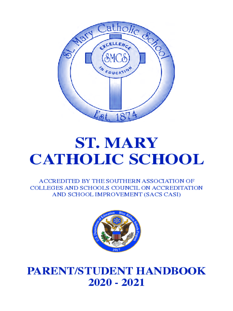 ST. MARY CATHOLIC SCHOOL ACCREDITED BY THE SOUTHERN ASSOCIATION OF COLLEGES AND SCHOOLS COUNCIL ON ACCREDITATION AND SCHOOL IMPROVEMENT (SACS CASE)2 01 7PARENT/STUDENT HANDBOOK 2020 2021St. Mary Catholic