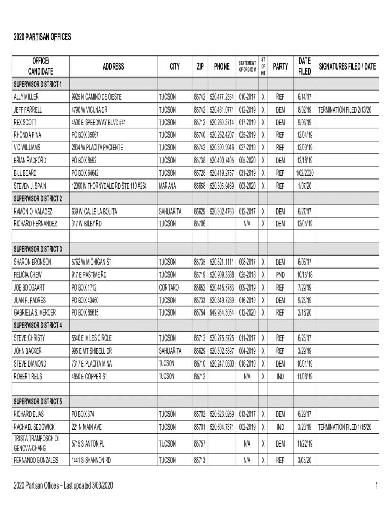 FILEDSIGNATURES FILED / DATESUPERVISOR DISTRICT 1