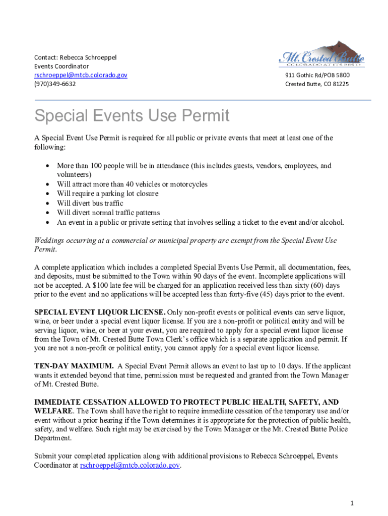 Get the free Special Events Use Permit Town of Mt. Crested Butte