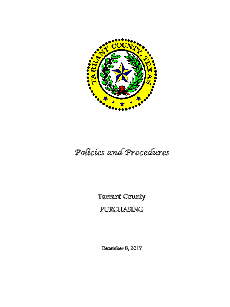 Policies and ProceduresTarrant County PURCHASING December 5, 2017TABLE OF CONTENTS INTRODUCTION.................................................................................................................