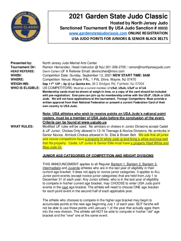 Get the free northjerseyjudo.comwp-contentuploads2021 Garden State Judo Classic - North Jersey Judo