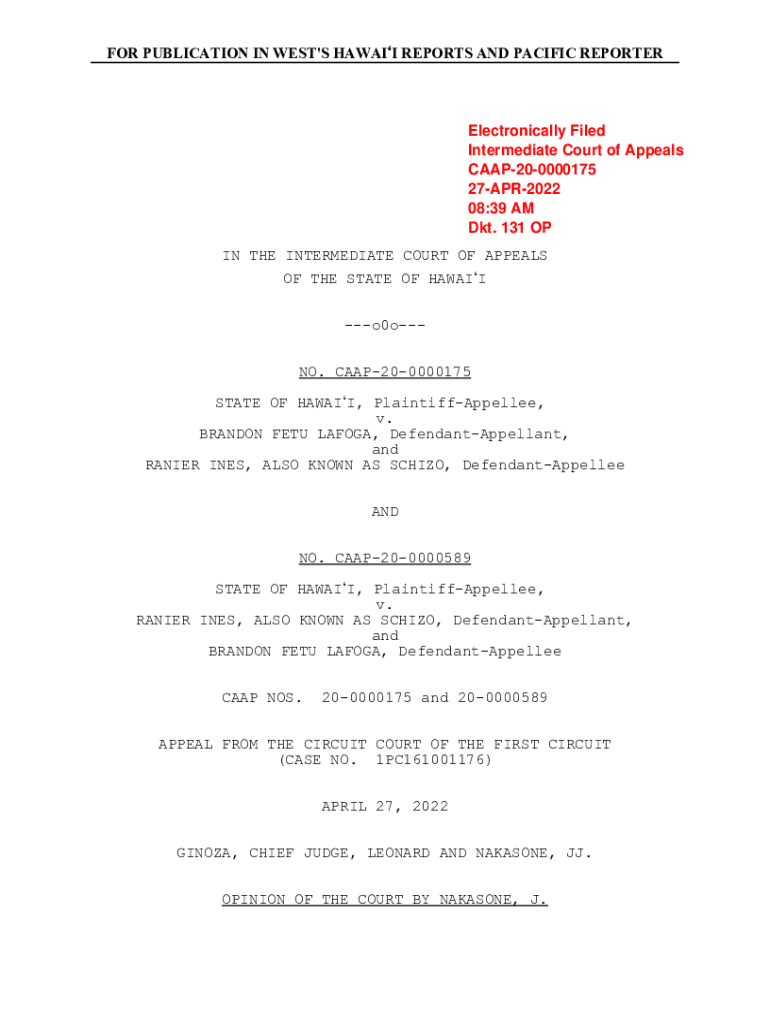 FOR PUBLICATION IN WEST\'S HAWAII#I Report AND PACIFIC REPORTERElectronically Filed Intermediate Court of Appeals CAAP200000175 27APR2022 08:39 AM Dot. 131 OP IN THE INTERMEDIATE COURT OF APPEALS