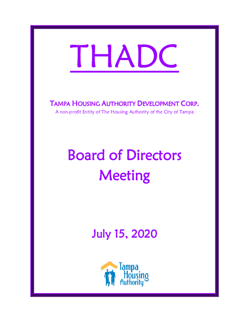 THAD TAMPA HOUSING AUTHORITY DEVELOPMENT CORP. A nonprofit Entity of The Housing Authority of the City of Lapboard of Directors Meeting July 15, 2020Meeting Agenda Tampa Housing Authority Development