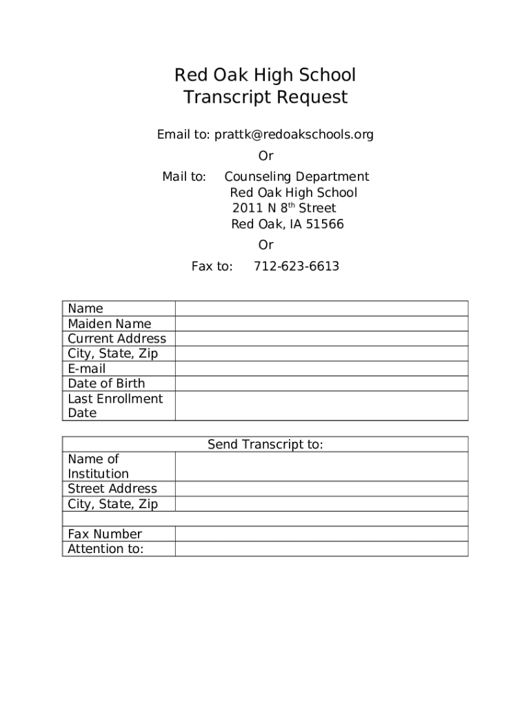 Template needmytranscript.comIARed-OakRed Oak High School Transcript RequestRed Oak, IA ... instructions