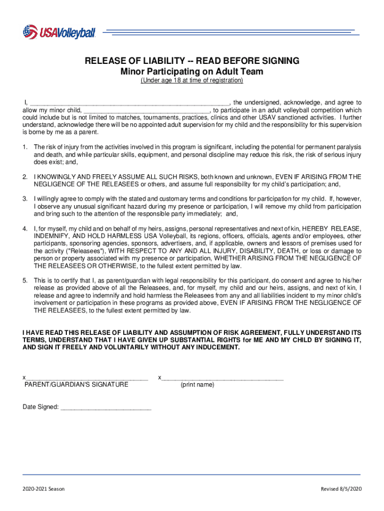 Get the free cdn2.sportngin.comattachmentsdocumentRELEASE OF LIABILITY -- READ BEFORE SIGNING Min...