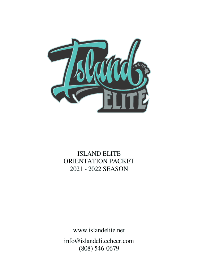 ISLAND ELITE ORIENTATION PACKET 2021 2022 Season. Island elite.net info@islandelitecheer.com (808) 5460679CONTENTS Tuition & Team Costs.5 Discounts.7 Important Dates....8 Competition Schedule.