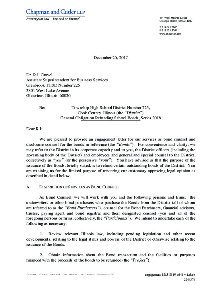 111 West Monroe Street Chicago, Illinois 606034080 T 312.845.3000 F 312.701.2361 www.chapman.comDecember 26, 2017Dr. R.J. Gravel Assistant Superintendent for Business Services Glen brook THAD Number