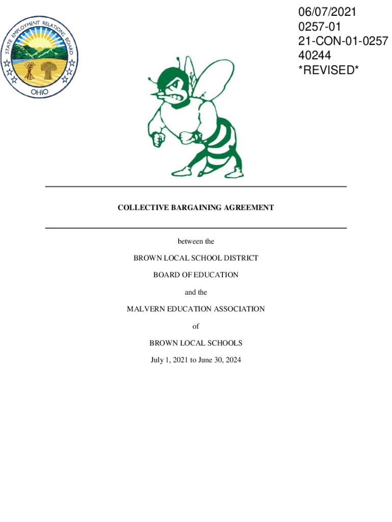 06/07/2021 025701 21CON010257 40244 *REVISED×COLLECTIVE BARGAINING AGREEMENT between the BROWN LOCAL SCHOOL DISTRICT BOARD OF EDUCATION and the TAVERN EDUCATION ASSOCIATION of BROWN LOCAL SCHOOLS