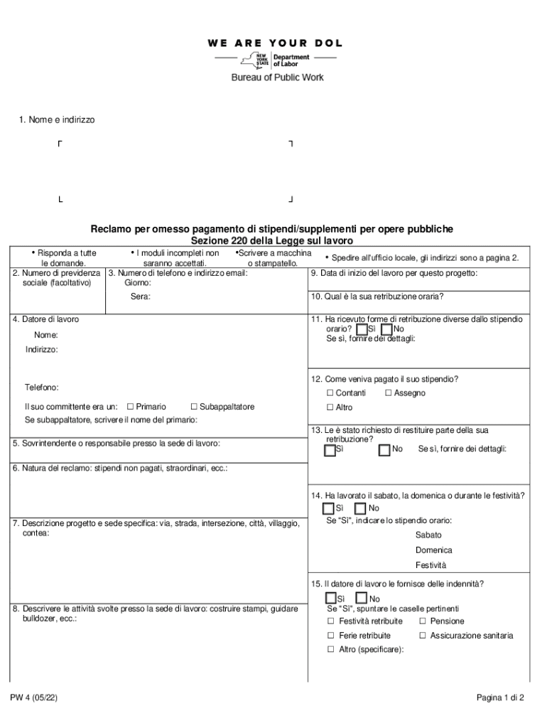 Get the free dol.ny.govemployee-complaint-pw-4-italian1. Il suo nome e indirizzo: - Department of...