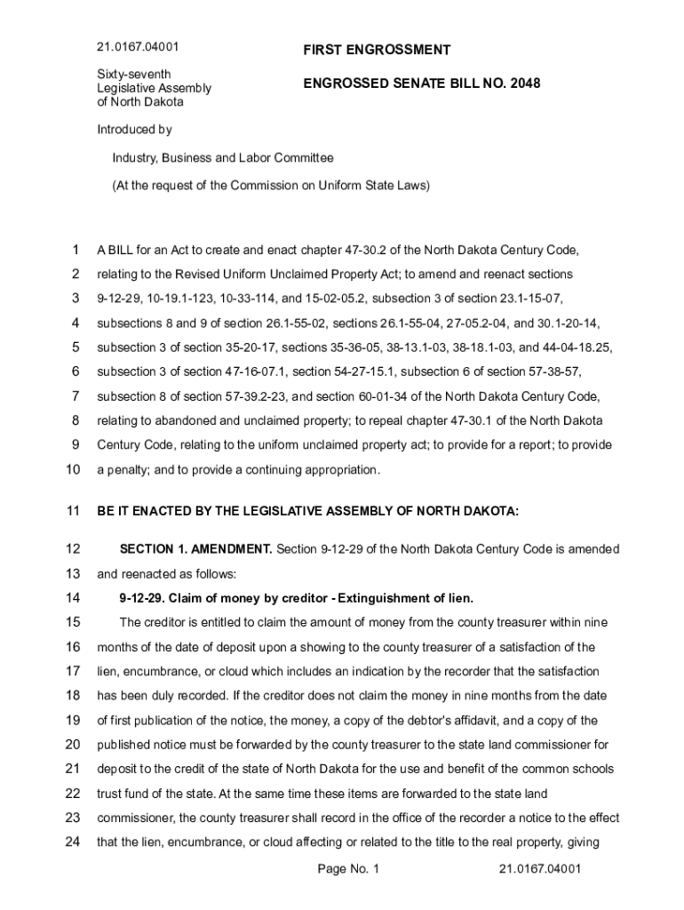 Get the free ENGROSSED Senate Bill No. 2048 FIRST ENGROSSMENT - Sixty-seventh Legislative Assembl...