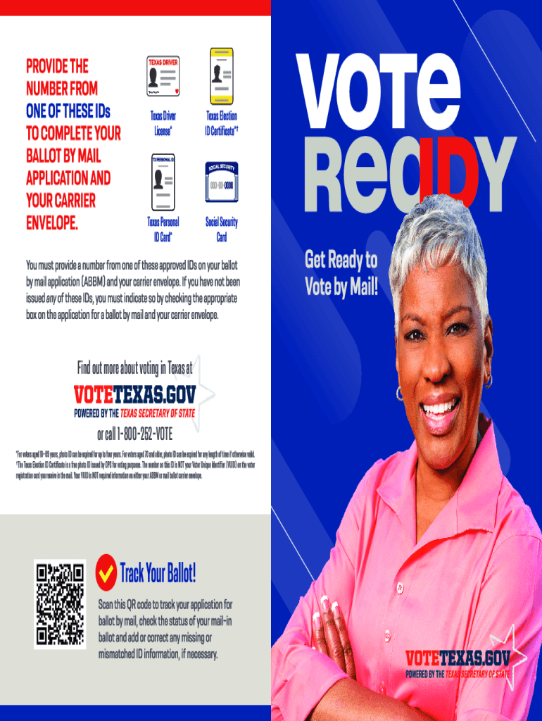 Find out more about voting in Texas at or call 1800252VOTEDO NOT REMOVE PERFORATED TABS. Moisten here and fold bottom to top to seal. Application for a Ballot by Mail If someone helps you complete