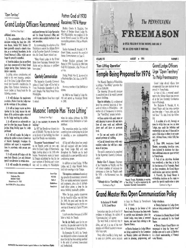 \'\'Open Territory\” Patton Grad of 1930Grand Lodge Officers RecommendReceives 1974 HonorContinued from Page 1additional areas. 5. The accumulative effect of these decisions revising the basic law