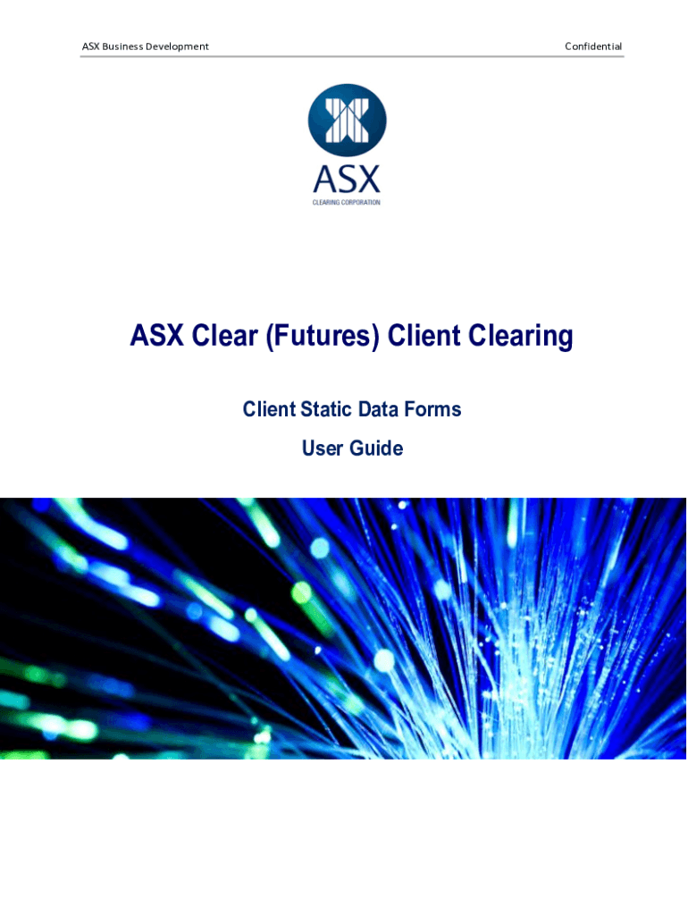 ASX Business DevelopmentConfidentialASX Clear (Futures) Client Clearing Client Static Data Forms User GuideDocument Purpose The purpose of this document is to assist users of Asks Client Clearing