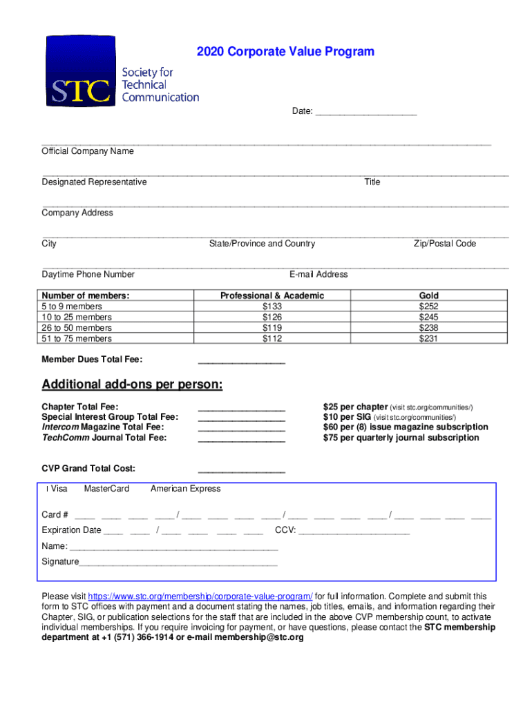 2020 Corporate Value Program Level II Organization Application Date: ___ ___ Official Company Name ___ Designated Representative Title ___ Company Address ___ City State/Province and Country Zip/Postal