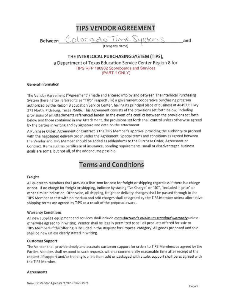 Meredith Barton Chief Operating Officer8/19/2020190902 Scoreboards and Services Addendum 1 Colorado Time Systems Supplier Response Event Information Number: Title: Type: Issue Date: Deadline: Notes:190902
