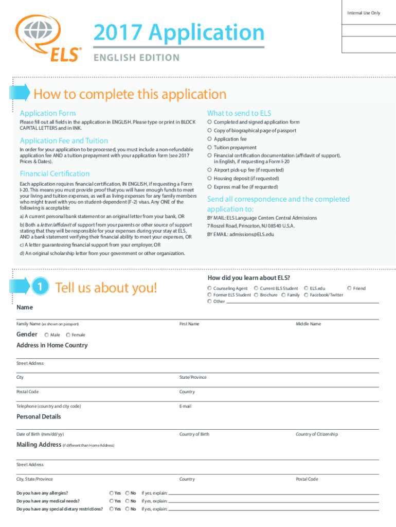 Internal Use Only2017 Application ENGLISH Edition to complete this application Format to send to Displease fill out all fields in the application in ENGLISH. Please type or print in BLOCK CAPITAL