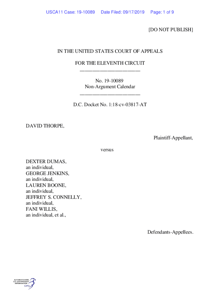 USCA11 Case: 1910089Date Filed: 09/17/2019Page: 1 of 9[DO NOT PUBLISH]IN THE UNITED STATES COURT OF APPEALS FOR THE ELEVENTH CIRCUIT ___ No. 1910089 Argument Calendar ___ D.C. Docket No. 1:18cv03817ATDAVID