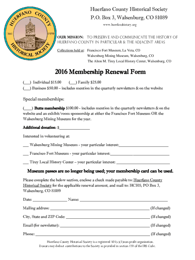 Get the free opengovco.combusiness19871145479THE HUERFANO COUNTY HISTORICAL SOCIETY114 E. Sixth S...