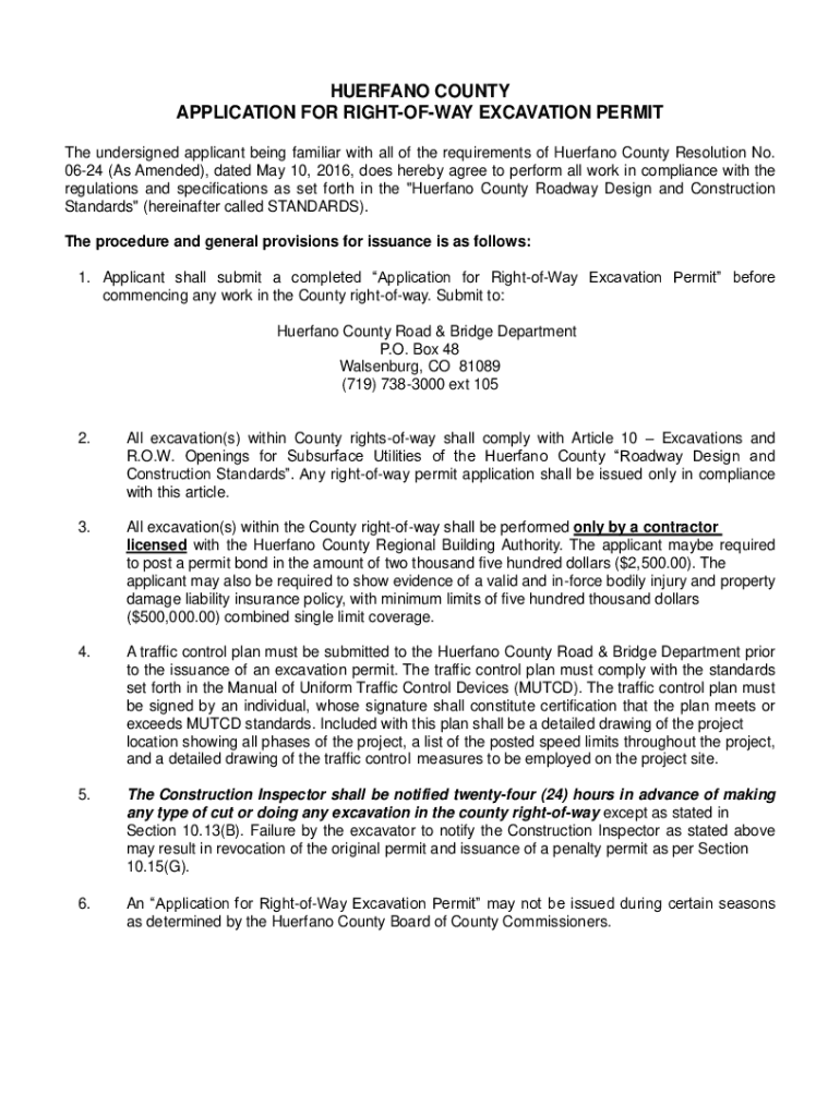 Get the free wp.huerfano.uswp-contentuploadsHUERFANO COUNTY APPLICATION FOR RIGHT-OF-WAY EXCAVATI...
