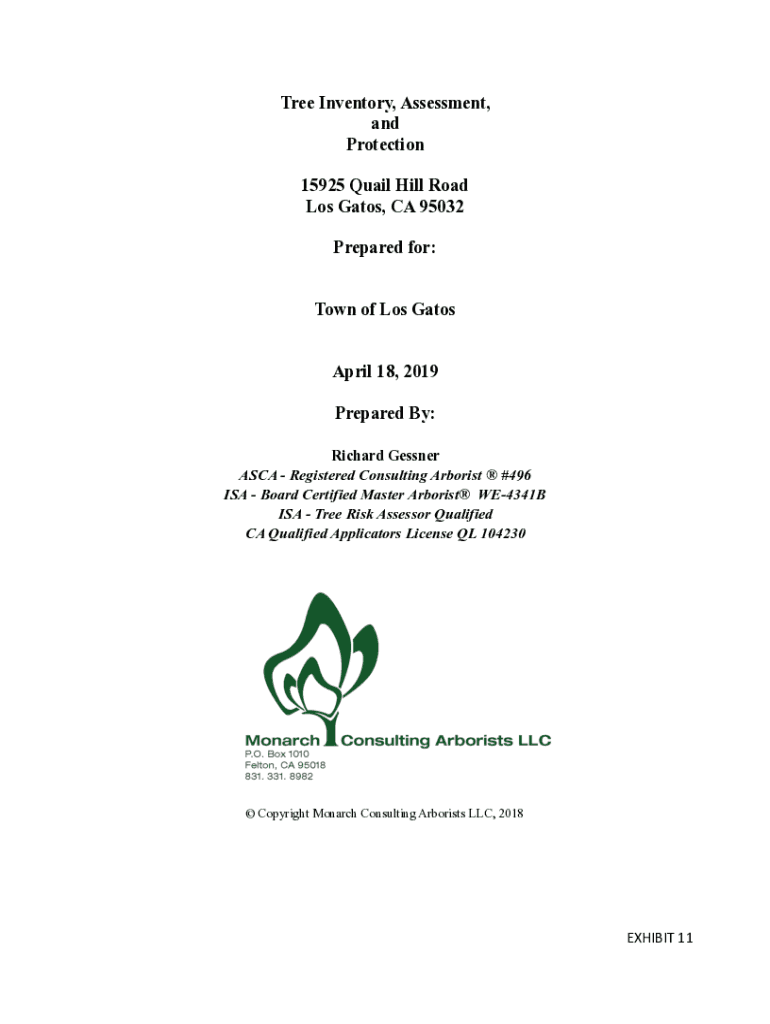 Tree Inventory, Assessment, and Protection 15925 Quail Hill Road Los Gatos, CA 95032 Prepared for: Town of Los Gatos April 18, 2019, Prepared By: Richard Lesser ASIA Registered Consulting Arborist