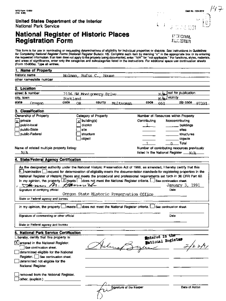 NFS Form 10900 (Rev. M6)United States Department of the Interior National Park ServiceNational Register of Historic Places Registration Form This form is for use in nominating or requesting determinations