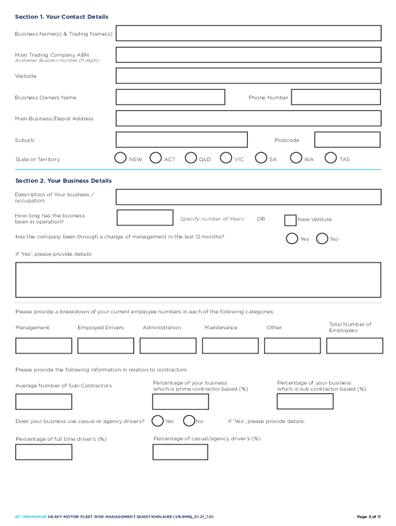 RISK MANAGEMENT QUESTIONNAIRE Heavy Motor FleetIMPORTANT INFORMATION PLEASE READ BEFORE COMPLETING THIS FORM DUTY OF Disclosure We collect Your personal informationYour Duty of Disclosure collect
