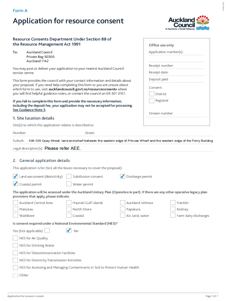 Get the free www.aucklandcouncil.govt.nz...Application for resource consent Form A - Auckland Cou...